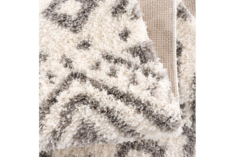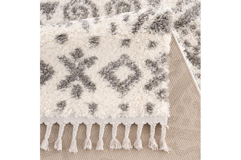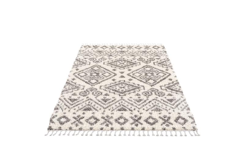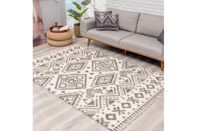 Das sanfte, verspielt geometrische Muster und die kuscheligen Fransen unterstreichen den gemütlichen Charme diesen Teppichs. Das trendige Boho-Design passt ideal in verschiedene Einrichtungsstile und schafft ein harmonisches Gesamtbild. Genießen Sie das angenehm weiche Gefühl des extra weichen Garnes unter Ihren Füßen bei jedem Schritt und schaffen Sie Komfort in jedem Wohnraum.