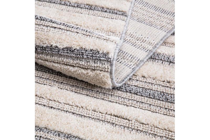 Seinen außergewöhnlichen Look verdankt der Bodenschmeichler der Herstellung im Cut-& Loop Verfahren. Weiches Polypropylen-Garn wurde auf flachen Sisal gesetzt und erzeugt eine beeindruckende Hochtief-Musterung. Der Materialmix besteht aus strapazierfähigen Kunstfasern, die langlebige und pflegeleichte Eigenschaften aufweisen. Flecken und Verschmutzungen können mit einem feuchten Tuch und sanften Reinigungsmitteln entfernt werden. Des Weiteren kann der Teppich mit einem Staubsauger ohne Bürstenkopf abgesaugt werden. Zertifiziert mit dem Prüfsiegel Öko-Tex Standard 100 ist er auch auf Schadstoffe geprüft. Ohne Weiteres lässt sich der Teppich auch mit einer Fußbodenheizung verwenden.